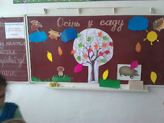 03.11.2016 року вчитель початкових класів Бородіна Н.А. (3 клас) провела інтегрований урок з української мови, математики, природознавства, художньої праці. "Осінь у саду". На занятті учні працювали над прямим і переносним значенням слів, пригадували синоніми, антоніми, складали речення, за схемою складали задачу. Цікавим було те, що учні за правильні відповіді прикріпляли до оголеного дерева осінні листочки відповідно до кольору своєї групи, що дало змогу потім визначити переможців. В кінці уроку діти прикрасили до кінця осінній сад: виготовили травичку, хмарки, сонечко, добавили осінніх листочків. І вийщов чудовий результат - осінній сад ожив!